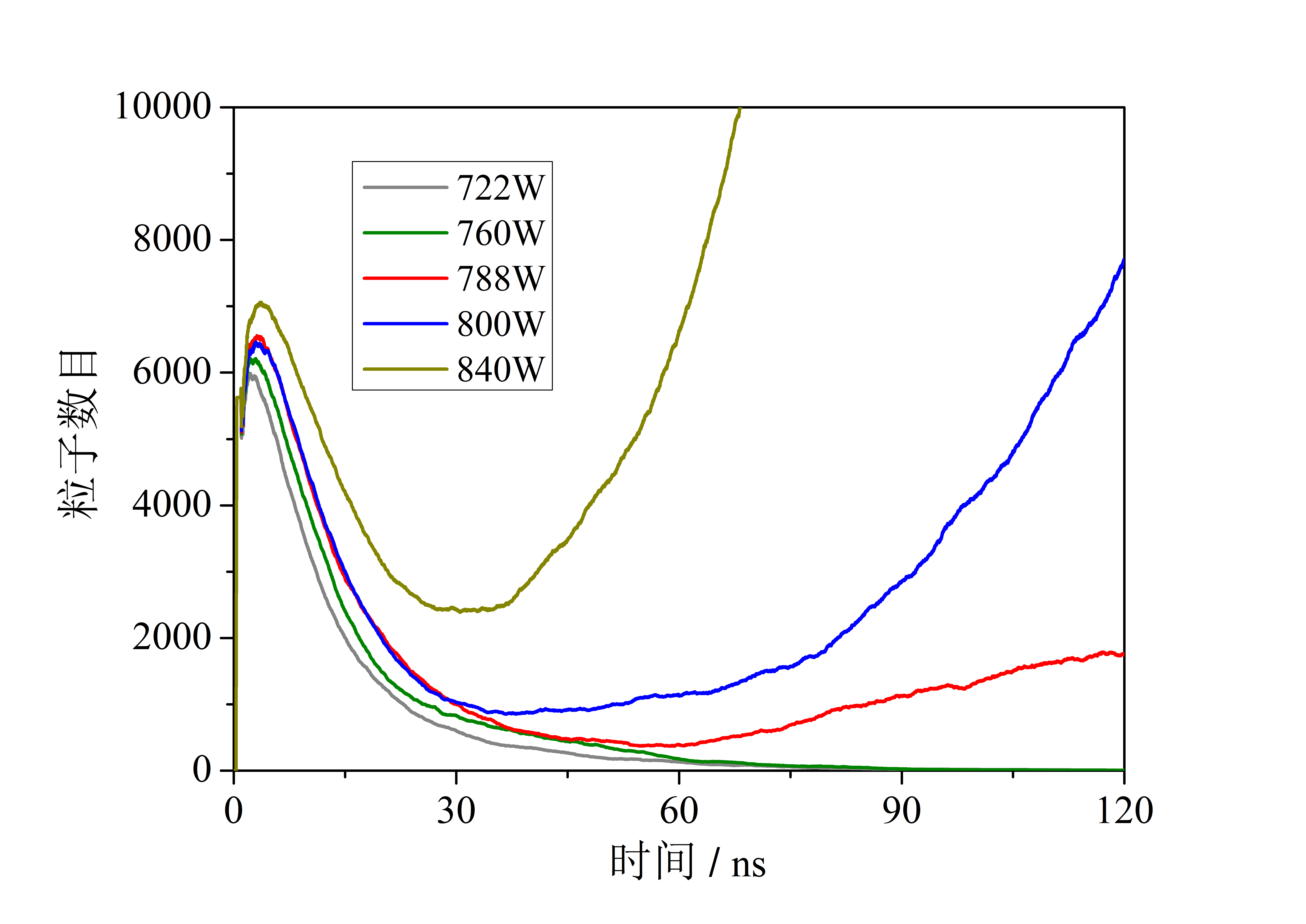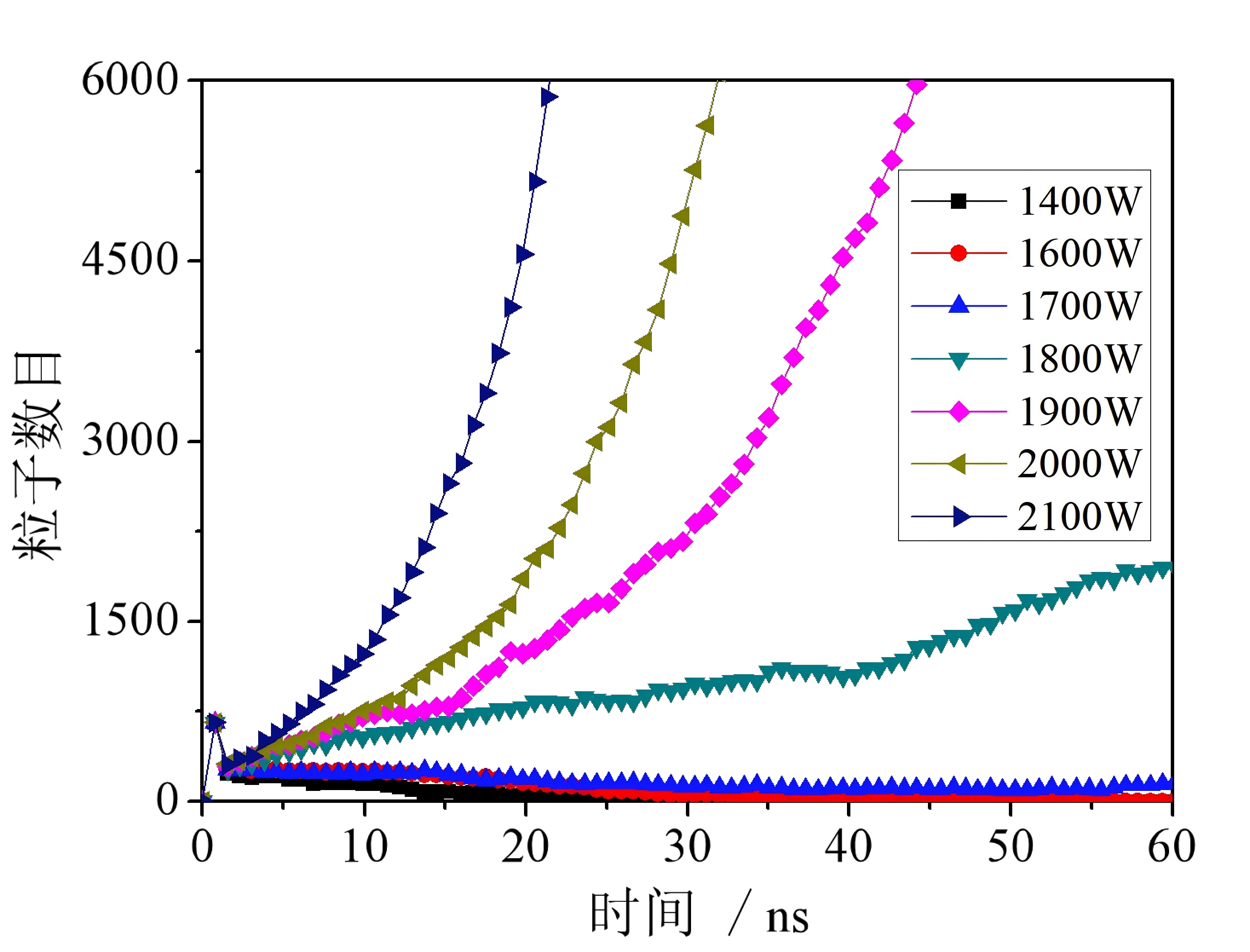 粒子模拟求解器支持Furman、Vaughan和自定义导入3种二次电子发射模型的计算,输出粒子数目随时间的演化曲线,帮助工程师分析微放电阈值。其使用的粒子合并技术,在保持粒子空间分布不变的前提下,通过有效减少模拟粒子数目显著提高了计算效率,进而使用户研究分析微放电稳态后的物理现象成为了可能。